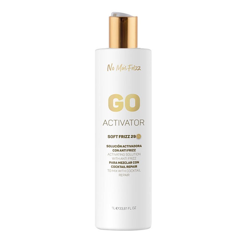 Loción activadora anti-frizz rica en acondicionadores de ingredientes naturales.